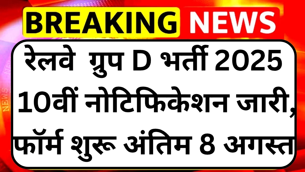Railway Group D 2025 का 10वीं पास के लिए भर्ती का नोटिफिकेशन जारी, ऑनलाइन आवेदन शुरू अंतिम तिथि 8 अगस्त